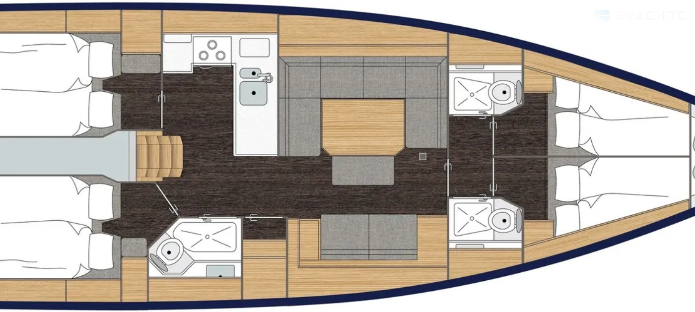 Wildcard can accommodate up to 8 people in 4 double cabins. Pillows and blankets are included in the price.