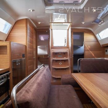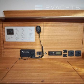 Boat equipment features rolling mainsail, salon gps plotter, bimini and bow thruster. It also boasts an an audio system, outside speakers and inside speakers. The fully-equipped galley includes an oven, cooker, sink and kitchen utensils.