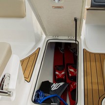 This 2022 Bayliner VR5 OE - Królik is suitable for 9 people. It is docked in Port Marina pod Czarnym Łabędziem, Poland.