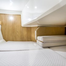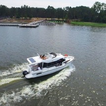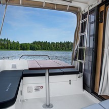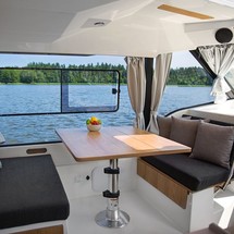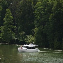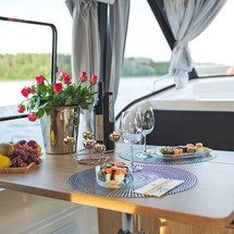 This houseboat is equipped with solar panels and bow thruster. In chilly weather, guests will benefit from heating. flat screen tv, an audio system, flybridge and inside speakers are also available.