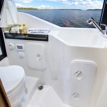 The living area of this houseboat consists of 2 cabins and accommodates 7 people. A shower is at the guests' disposal and there are 2 toilets on board.