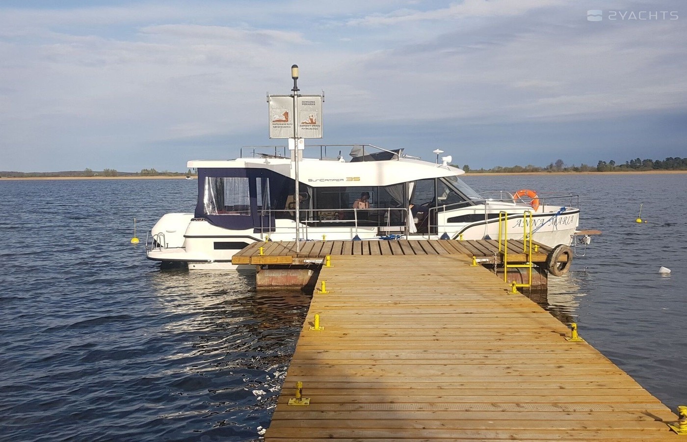 The Sun Camper 35 Flybridge Anna Maria houseboat was built in 2020, and it is docked in Camping & marina SUN BILA, Poland.