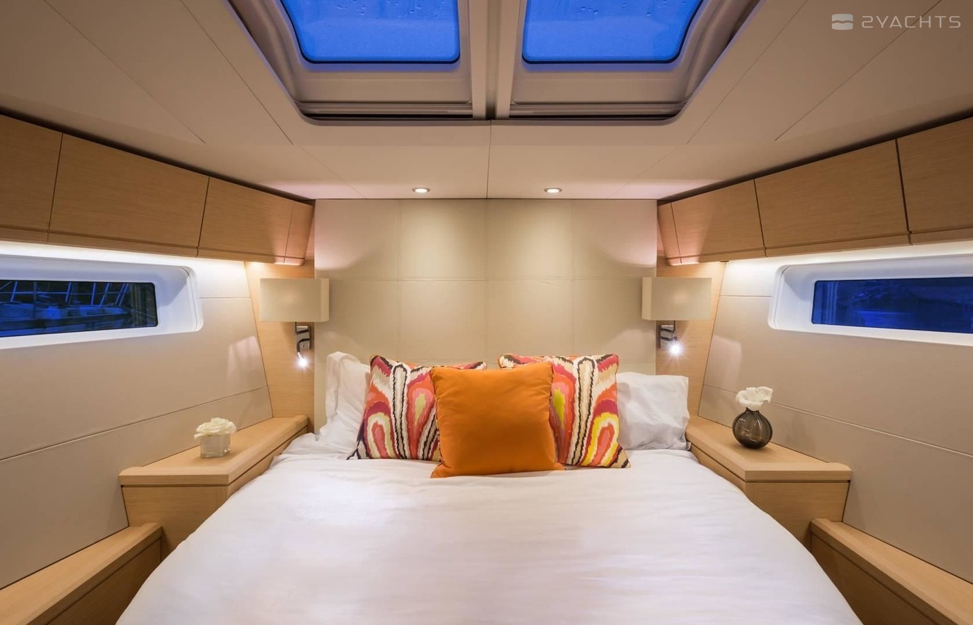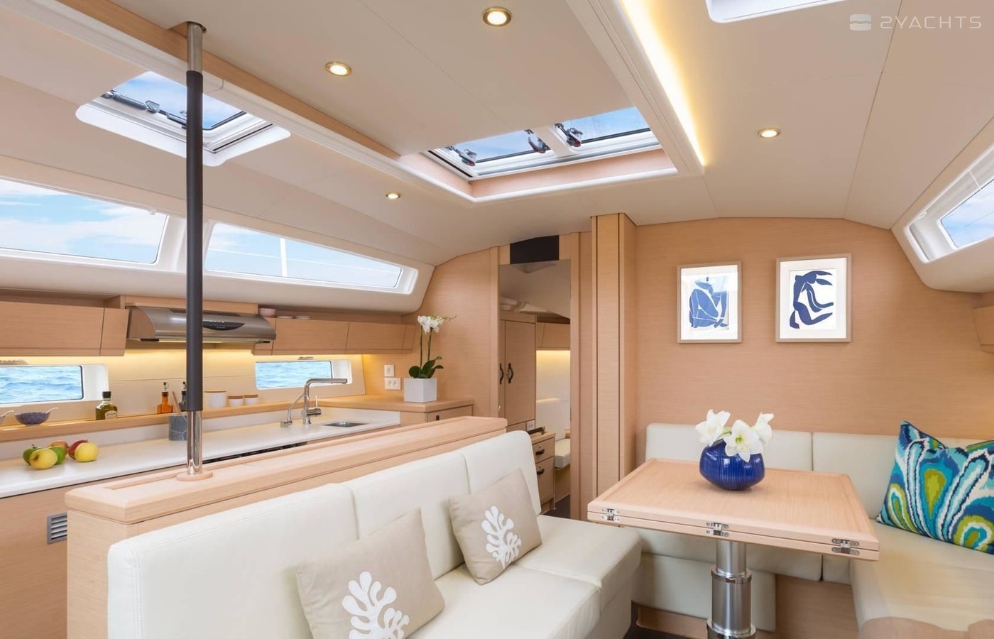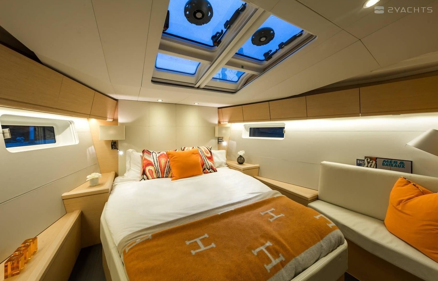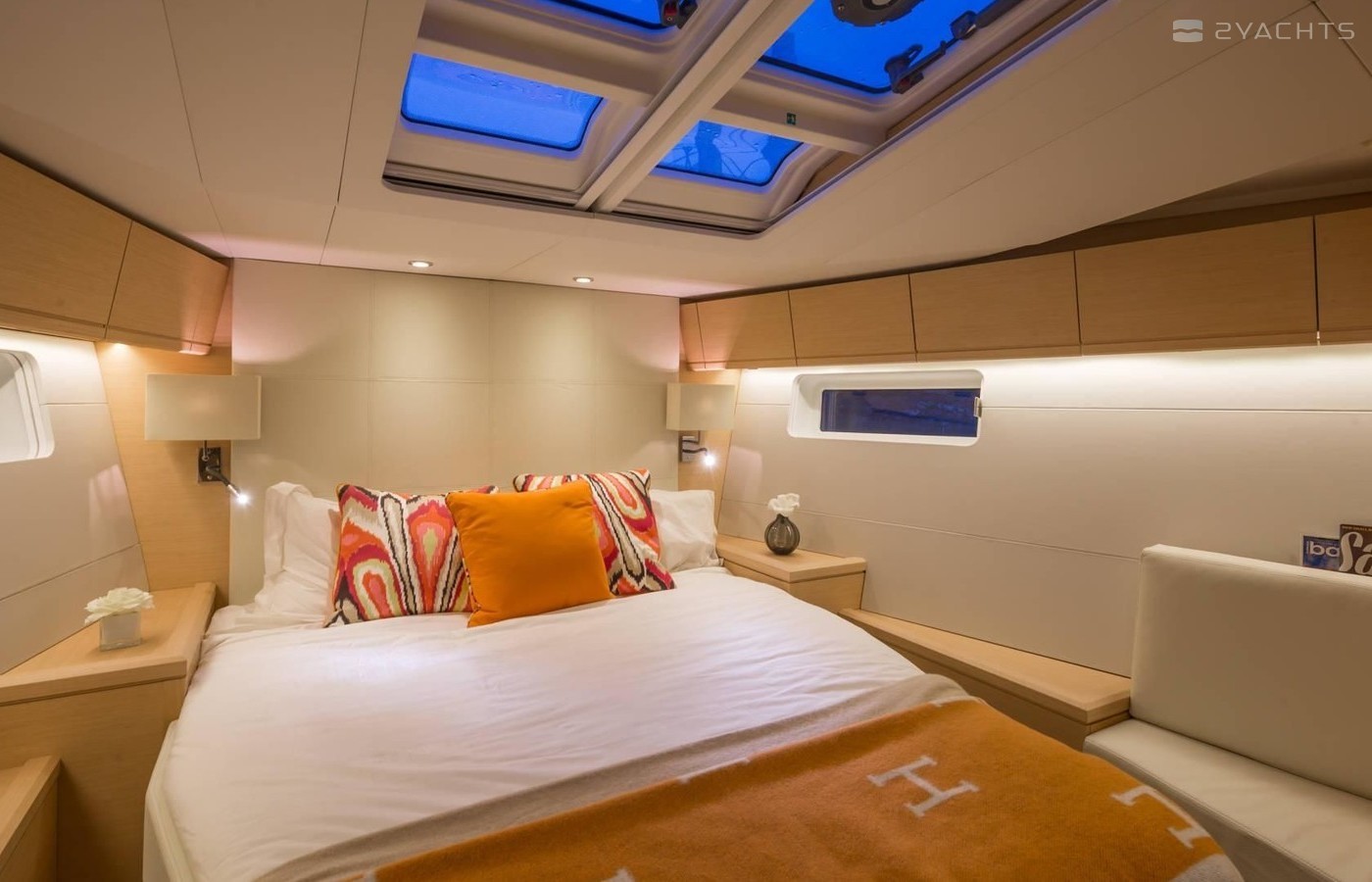 Cielito Lindo can accommodate up to 10 people in 4 double cabins and 1 double cabin with a bunk bed. Pillows and blankets are included in the price.