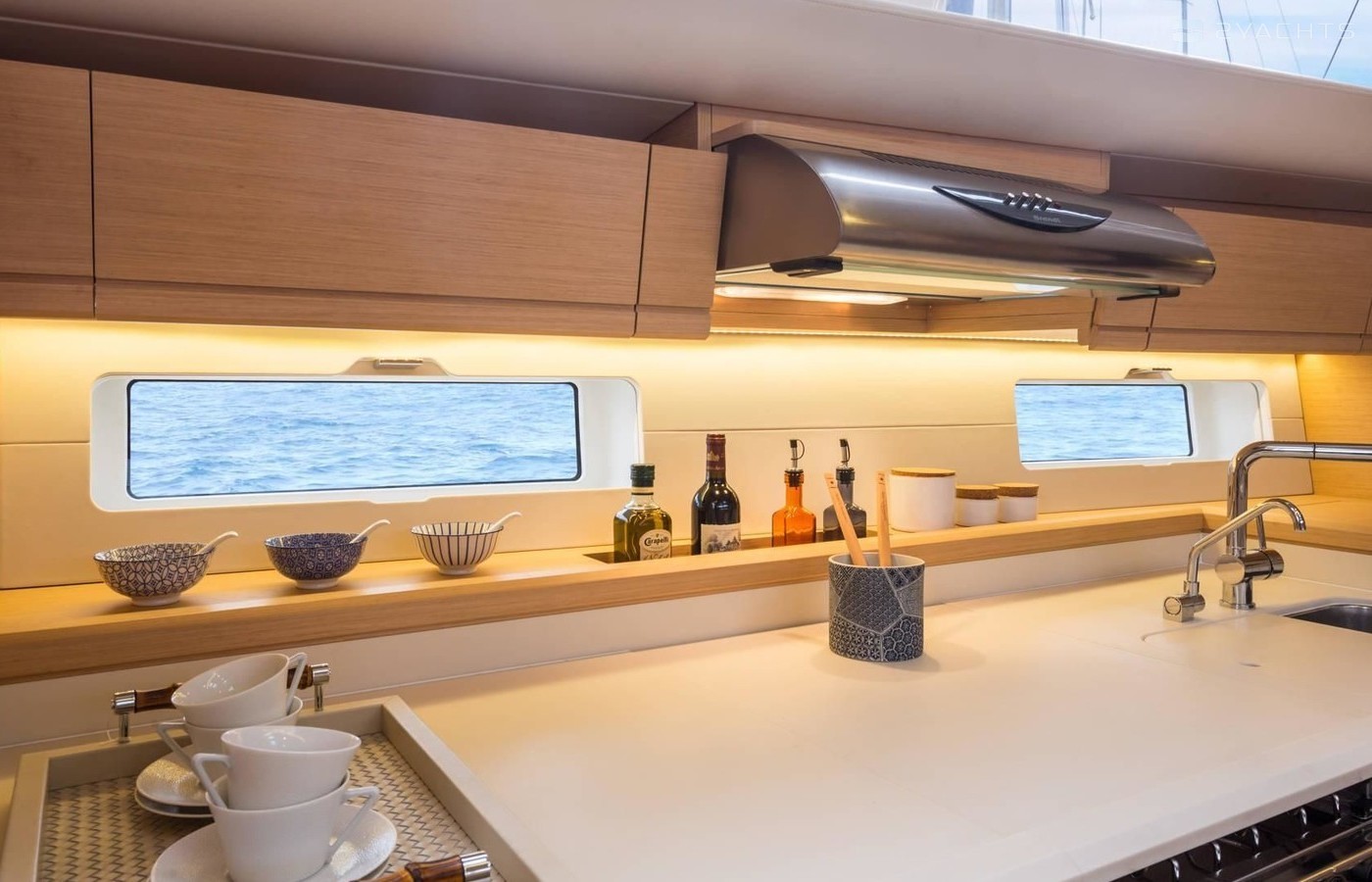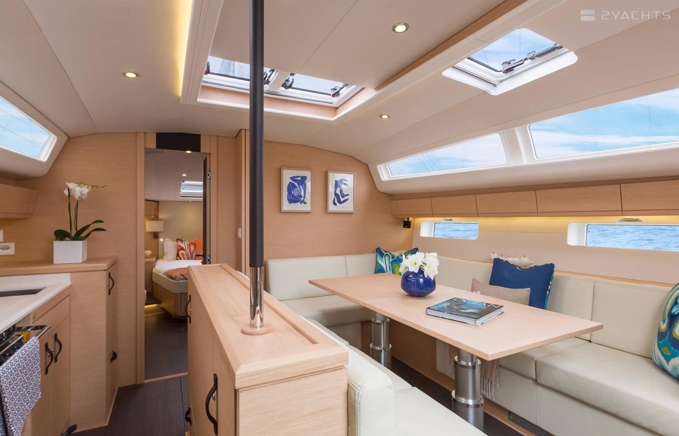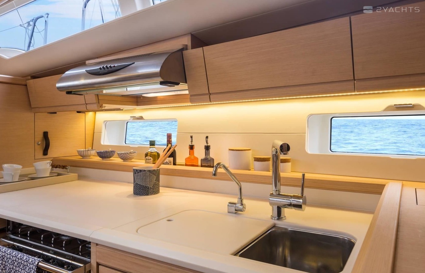 Boat equipment features classical mainsail and outside gps plotter. It also boasts an an audio system, outside speakers and inside speakers. The fully-equipped galley includes an oven, cooker, sink and kitchen utensils.