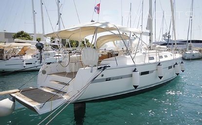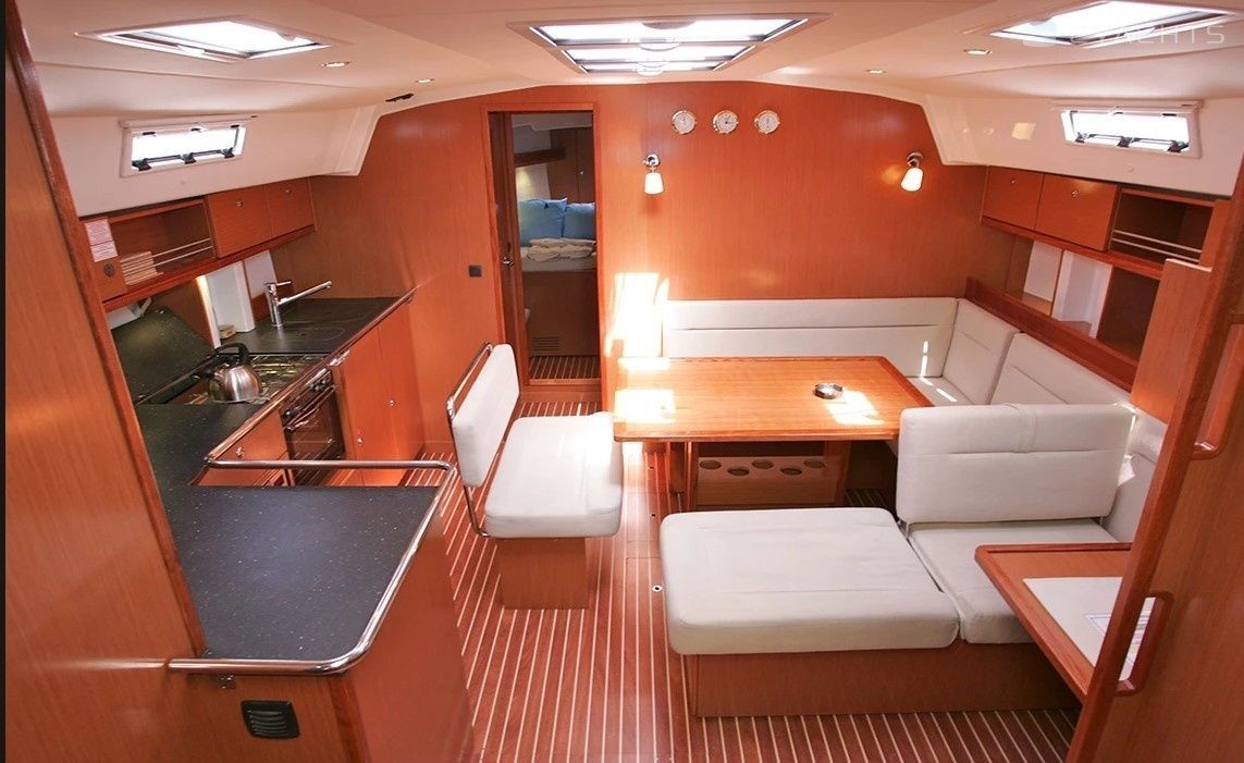 Boat equipment features rolling mainsail, radar, salon gps plotter, bimini and bow thruster. It also boasts an an audio system, outside speakers and inside speakers. The fully-equipped galley includes an oven, cooker, sink and kitchen utensils.