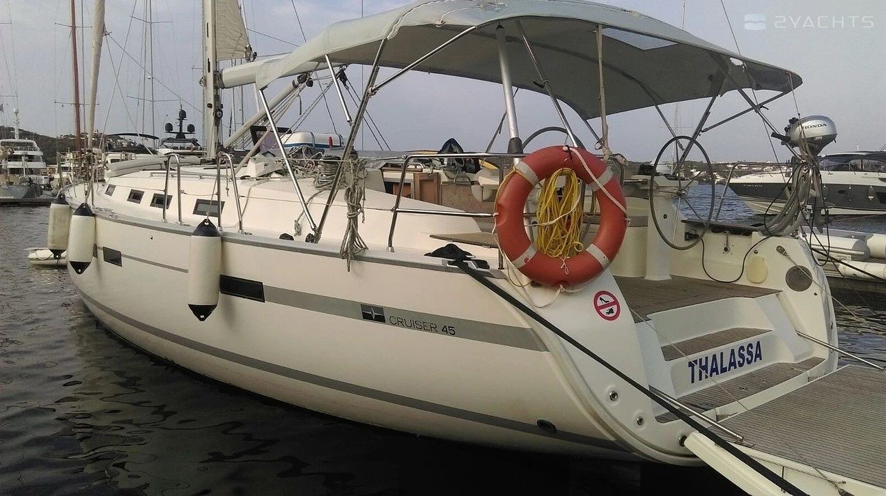 4-cabin sailing yacht Bavaria Cruiser 45 - Thalassa was built in 2011, and it is docked in Port De Mataró, Spain.