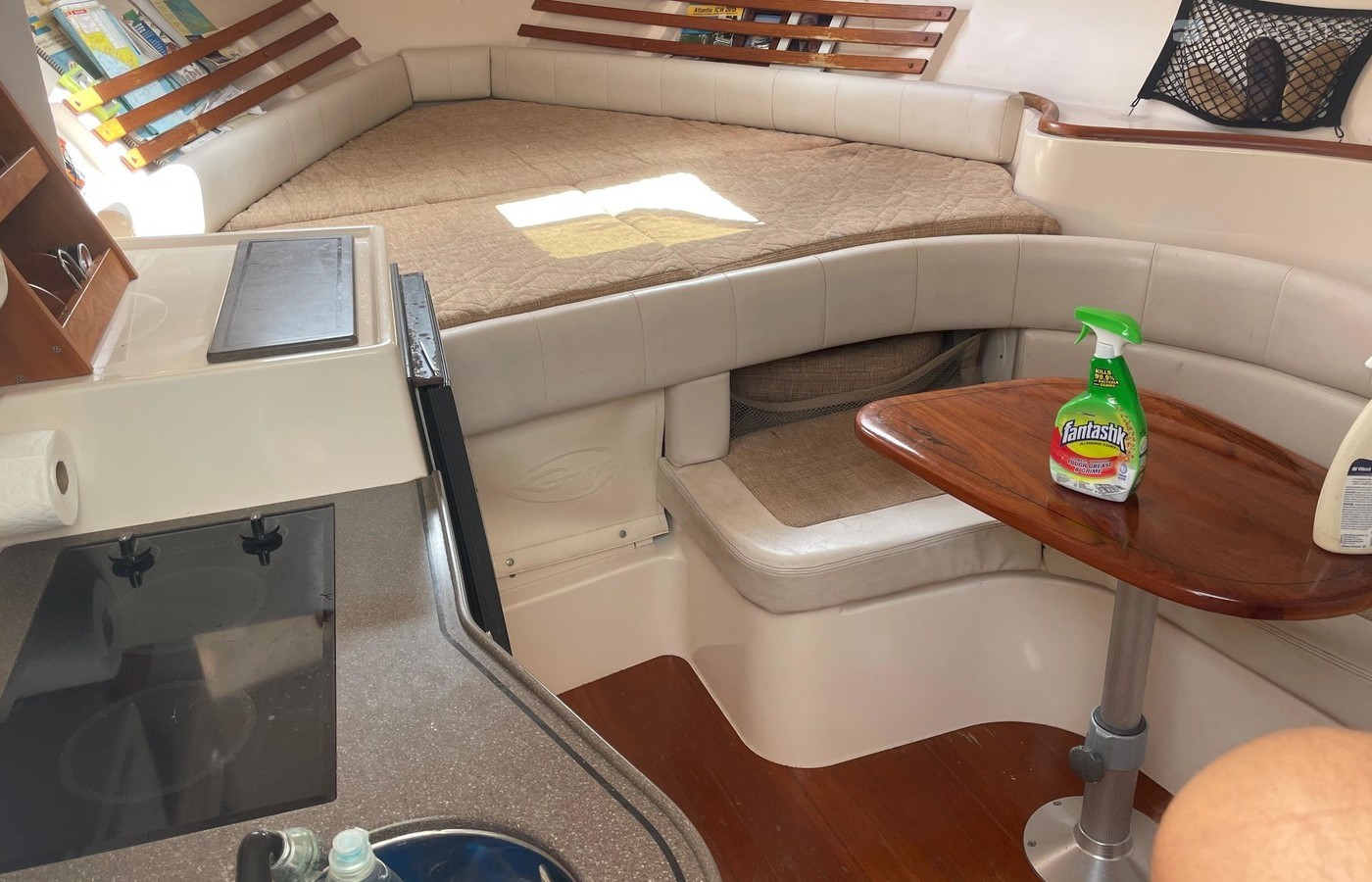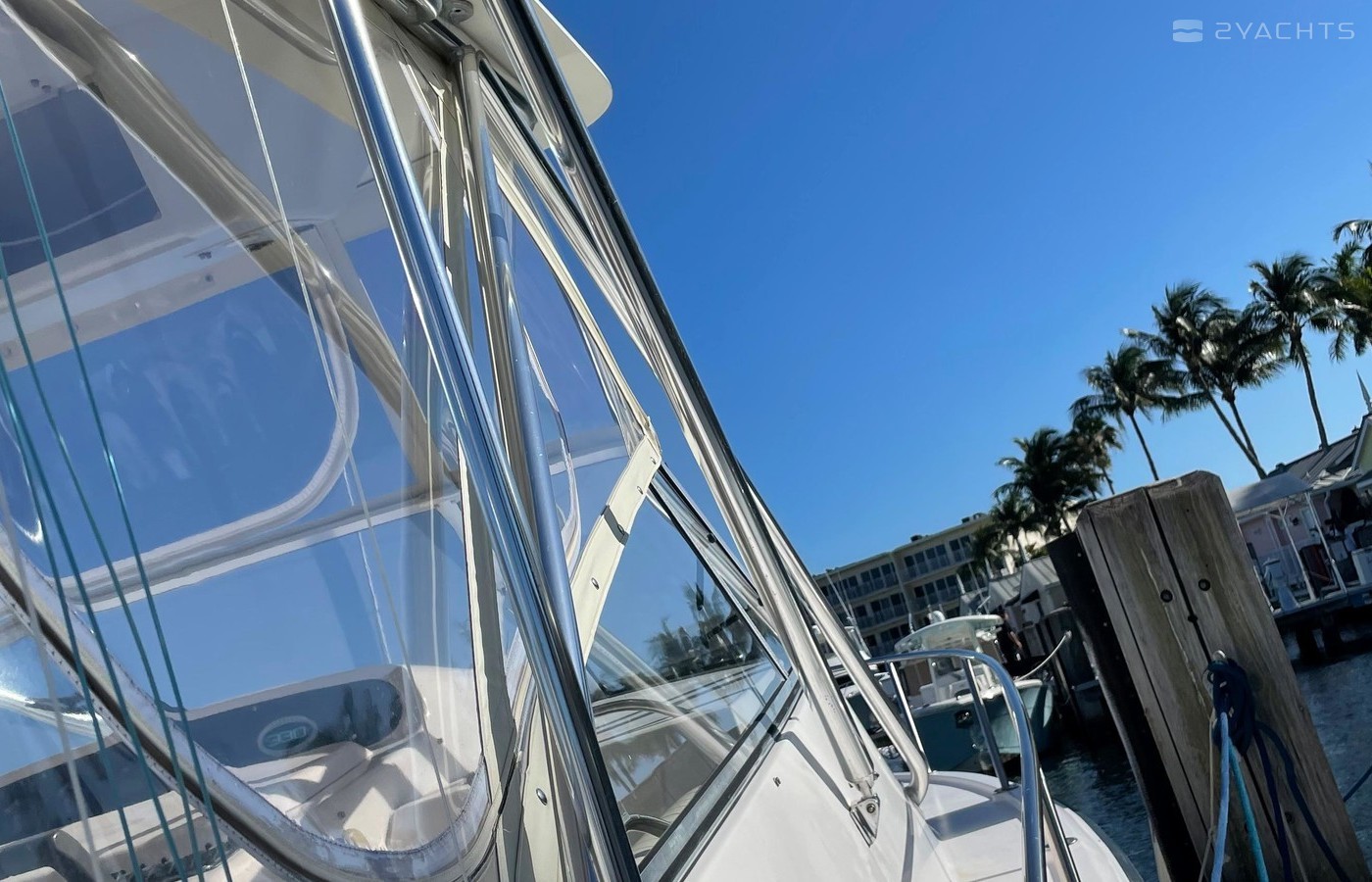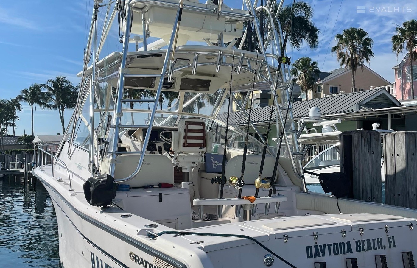 This is a great opportunity to own a fantastic boat! It has full tower and full outriggers and fishes great! In full transparency this boat needs some work which I will go through in detail to serious buyers. Tower needs a good welder, electronics need to be upgraded, and the engines are old. (2006) and eventually will need a re power. They run fine now and oil is still good between changes and they may last a couple more years with no issues but I would be prepared to re power. This is a perfect boat fror someone wants a project you can actually use while you address the issues. Eisenglass and coushions are less than two years old. Priced way under market value for consideration of the work that needs to be done and depreciation of the motors.
