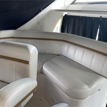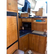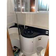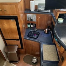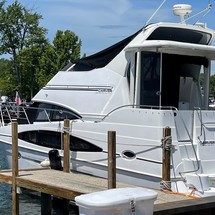 If you are looking for a 2-bedroom 2-bathroom condo on the water, this one owner boat is it! The 346 aft cabin fly bridge Carver has a lot to offer. Powered by twin Mercruiser 8.1L freshwater cooled inboards puitting out 370 HP each with only 225 freshwater hours. It also comes equipped with generator, heat/ac, shore power, full galley with all the comforts of your household kitchen, 2 staterooms with 2 full heads each with a separate shower, flat screen TV in the salon, all bedding, cabin carpet runners to protect the carpet, 2 sets of canvas and the full enclosure has barely been used, remote spotlight, compass, depth finder, trim tabs, Raymarine GPS and radar, VHF radio, cockpit and cabin stereo system.The boat is super clean and has been maintained at a high level!