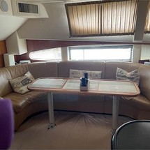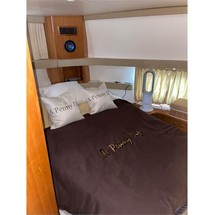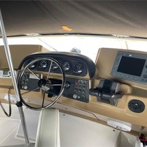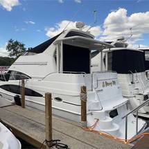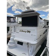 No descriptioIf you are looking for a 2-bedroom 2-bathroom condo on the water, this one owner boat is it! The 346 aft cabin fly bridge Carver has a lot to offer. Powered by twin Mercruiser 8.1L freshwater cooled inboards puitting out 370 HP each with only 225 freshwater hours. It also comes equipped with generator, heat/ac, shore power, full galley with all the comforts of your household kitchen, 2 staterooms with 2 full heads each with a separate shower, flat screen TV in the salon, all bedding, cabin carpet runners to protect the carpet, 2 sets of canvas and the full enclosure has barely been used, remote spotlight, compass, depth finder, trim tabs, Raymarine GPS and radar, VHF radio, cockpit and cabin stereo system.The boat is super clean and has been maintained at a high level!n