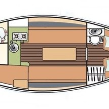Boat equipment features classical mainsail, salon gps plotter, bbq and outside gps plotter. It also boasts an an audio system and inside speakers. The fully-equipped galley includes a cooker, sink and kitchen utensils.