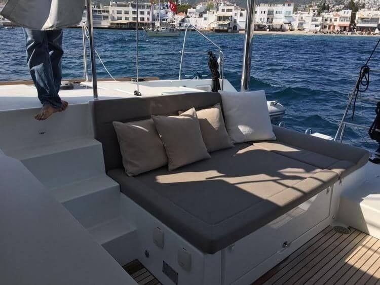 6-cabin catamaran Lagoon 450 F - Attina was built in 2015, and it is docked in Marina Solila, Montenegro.