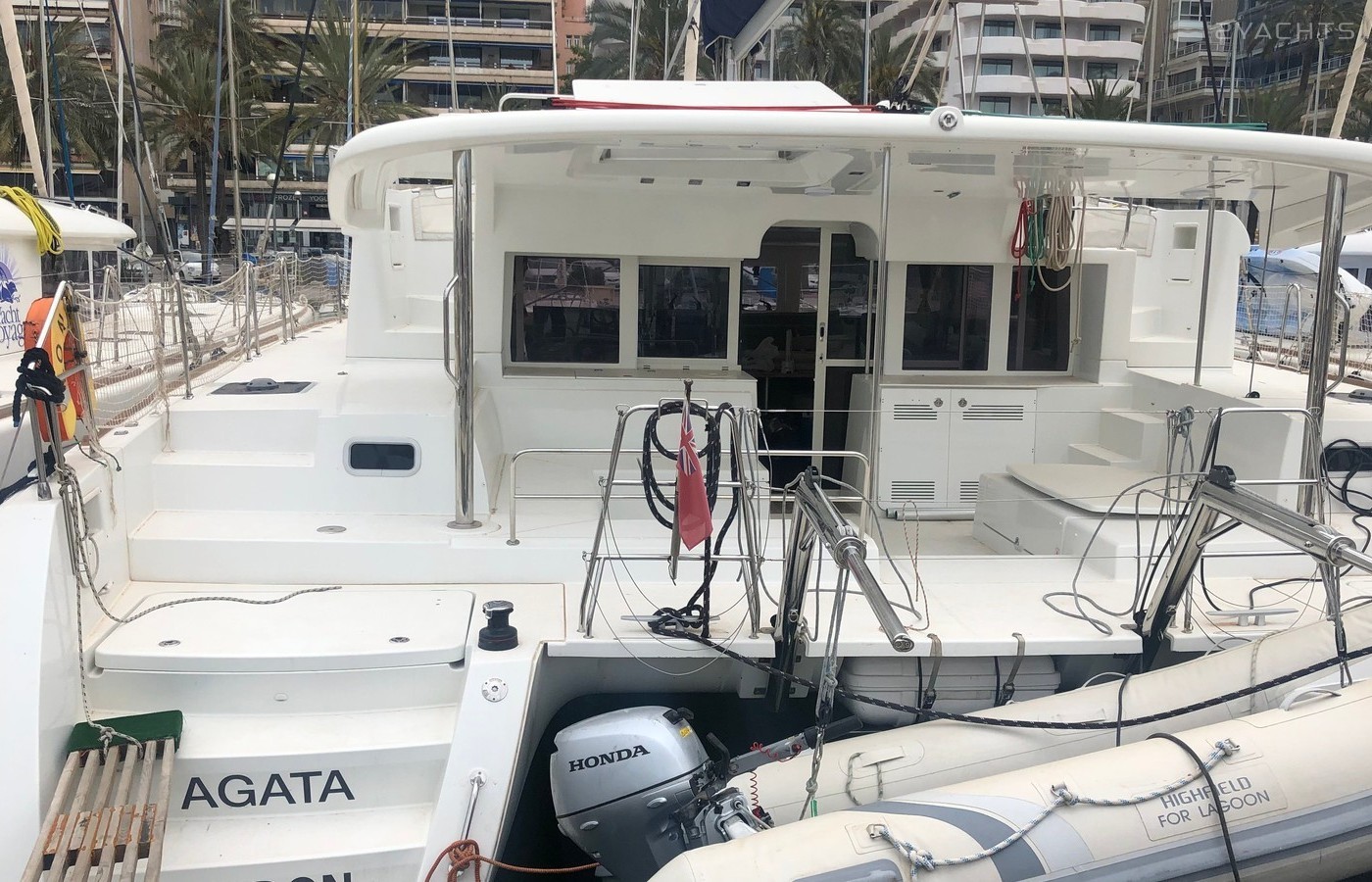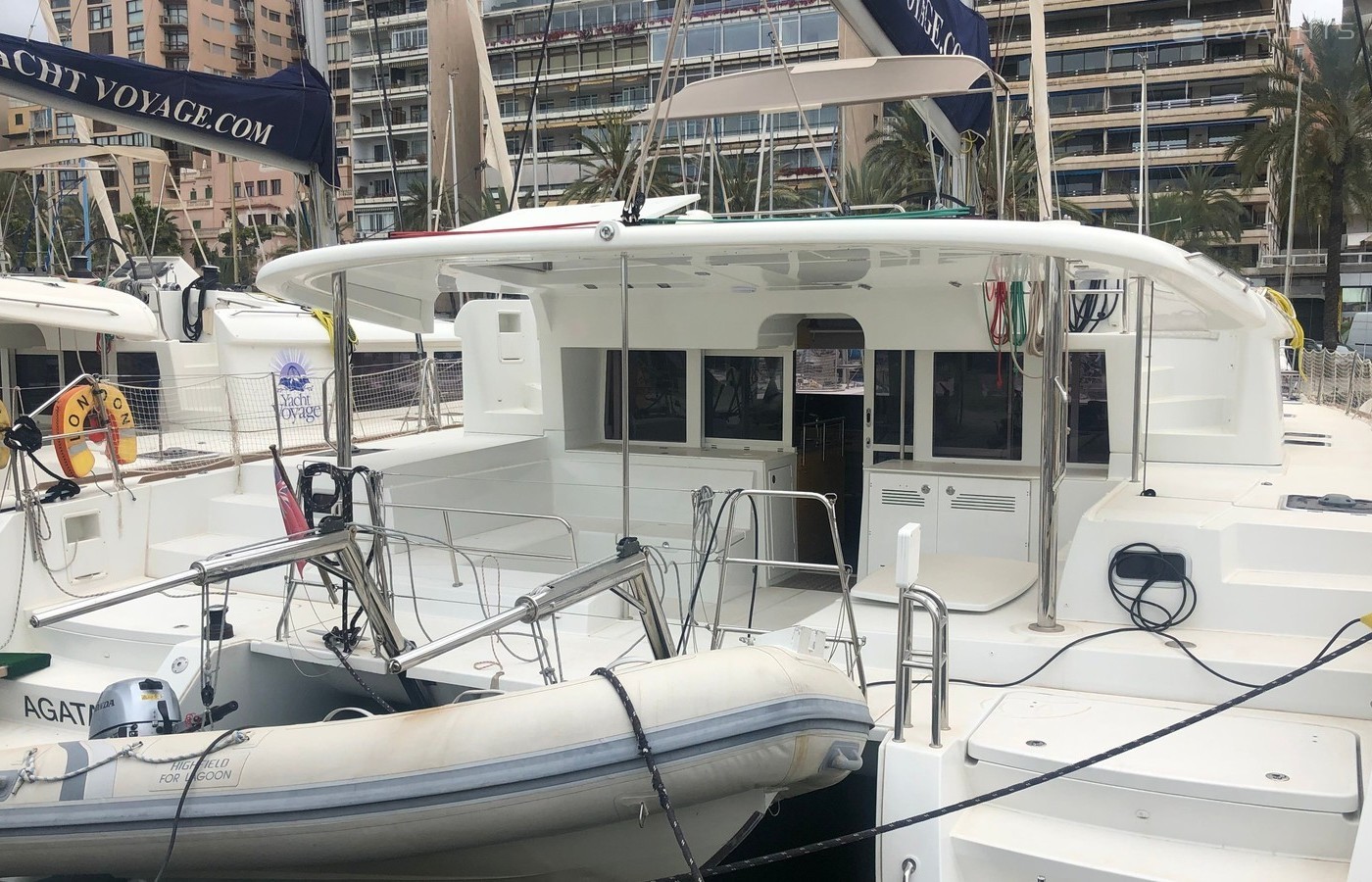 This catamaran is operated by the charter company One Day Charter.