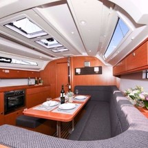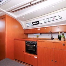 Boat equipment features classical mainsail, salon gps plotter, bimini and outside gps plotter. It also boasts a flat screen tv, heating, an audio system, outside speakers and inside speakers. The fully-equipped galley includes an oven, cooker, sink and kitchen utensils.