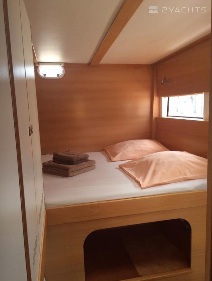Phileas Fogg 2 can accommodate up to 8 people in 4 double cabins. Pillows and blankets are included in the price.