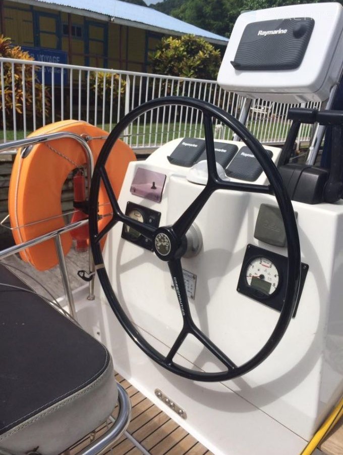 Boat equipment features classical mainsail, solar panels, bimini and outside gps plotter. It also boasts an an audio system, outside speakers and inside speakers. The fully-equipped galley includes a freezer, oven, cooker, sink and kitchen utensils.