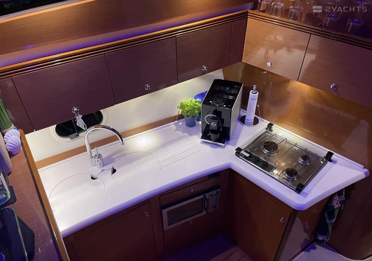Boat equipment features bbq, bimini and outside gps plotter. It also boasts an an audio system, outside speakers, flybridge, free stand up paddleboard and stand up paddle. The fully-equipped galley includes a microwave, freezer, cooker, sink and kitchen utensils.