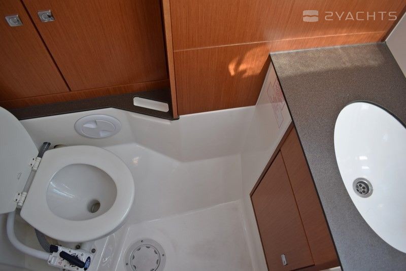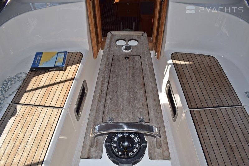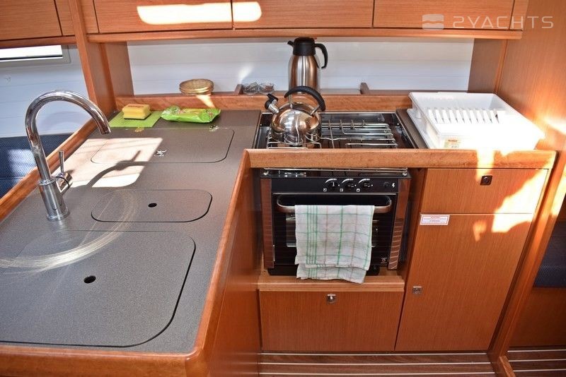 Boat equipment features rolling mainsail, salon gps plotter, bimini and outside gps plotter. It also boasts an an audio system, outside speakers and inside speakers. The fully-equipped galley includes an oven, cooker, sink and kitchen utensils.