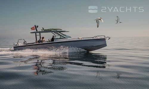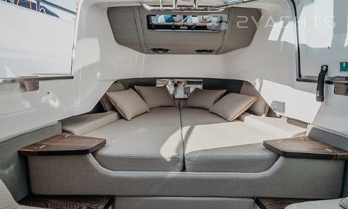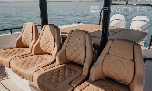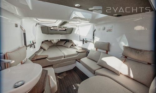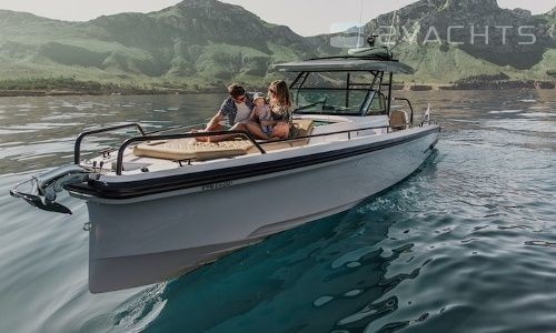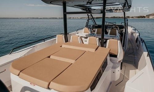 This 2021 Axopar 37 Sun Top - Axe is suitable for 10 people. It is docked in Port d'Alcúdia, Spain.