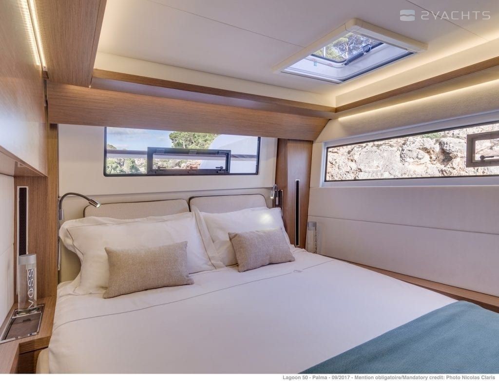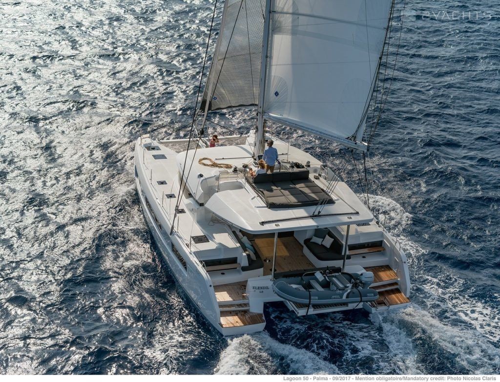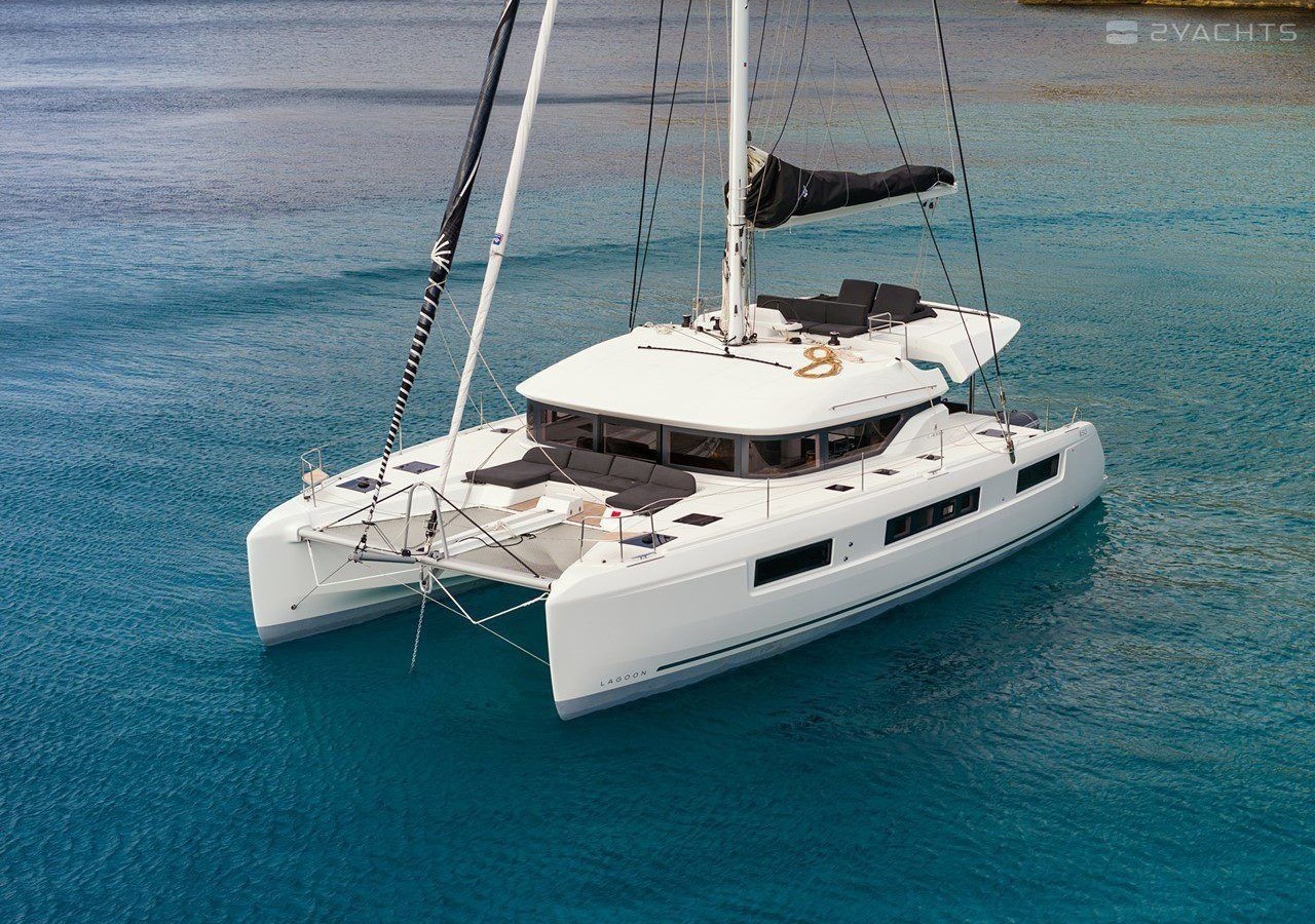 This catamaran is operated by the charter company Horizon Yacht Charters.