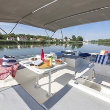 This houseboat is equipped with bbq, bimini and bow thruster. In chilly weather, guests will benefit from heating. an audio system, dvd player, outside speakers, flybridge and inside speakers are also available.