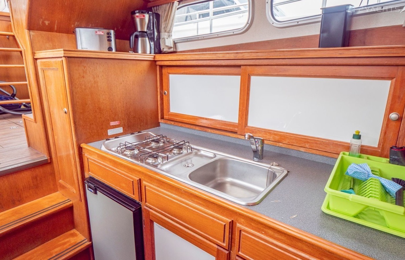 A well-equipped galley with cooker, sink and kitchen utensils is prepared to facilitate cooking. There is also a on board.