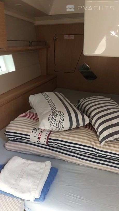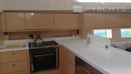 Boat equipment features rolling mainsail, electric winches, generator, salon gps plotter, bbq and bimini. It also boasts a flat screen tv, heating, air conditioning, an audio system and outside speakers. The fully-equipped galley includes an oven, cooker, sink and kitchen utensils.