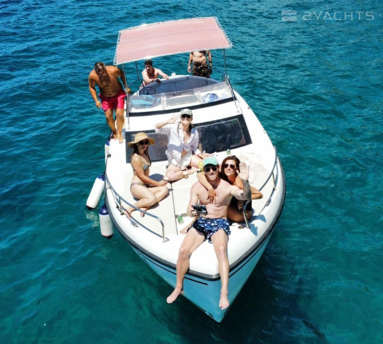 Boat equipment features bimini and bathing platform. It also boasts a stand up paddle. The fully-equipped galley includes a coffee machine, oven, cooker, sink and kitchen utensils.