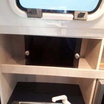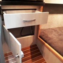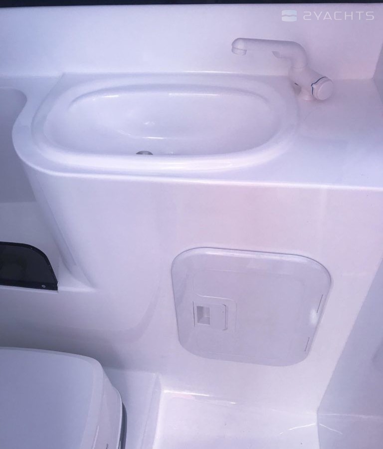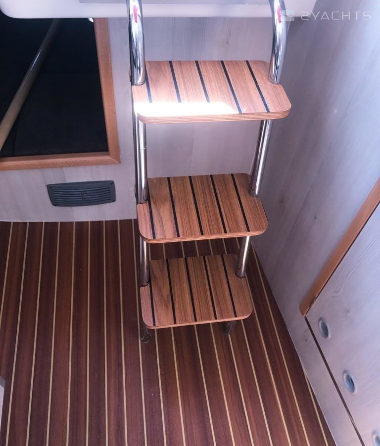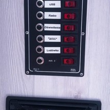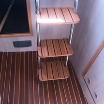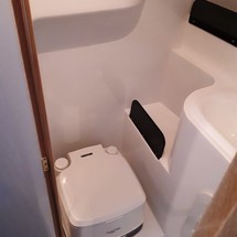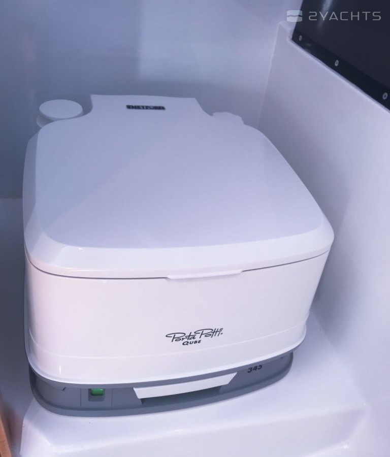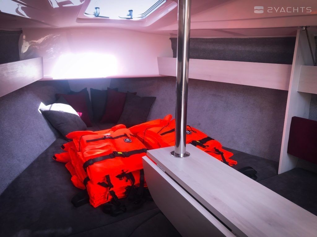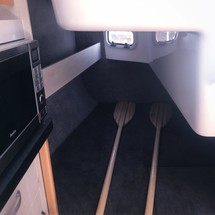 Boat equipment features classical mainsail. It also boasts a heating, an audio system and inside speakers. The fully-equipped galley includes a microwave, cooker, sink and kitchen utensils.