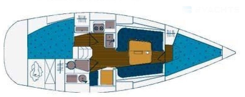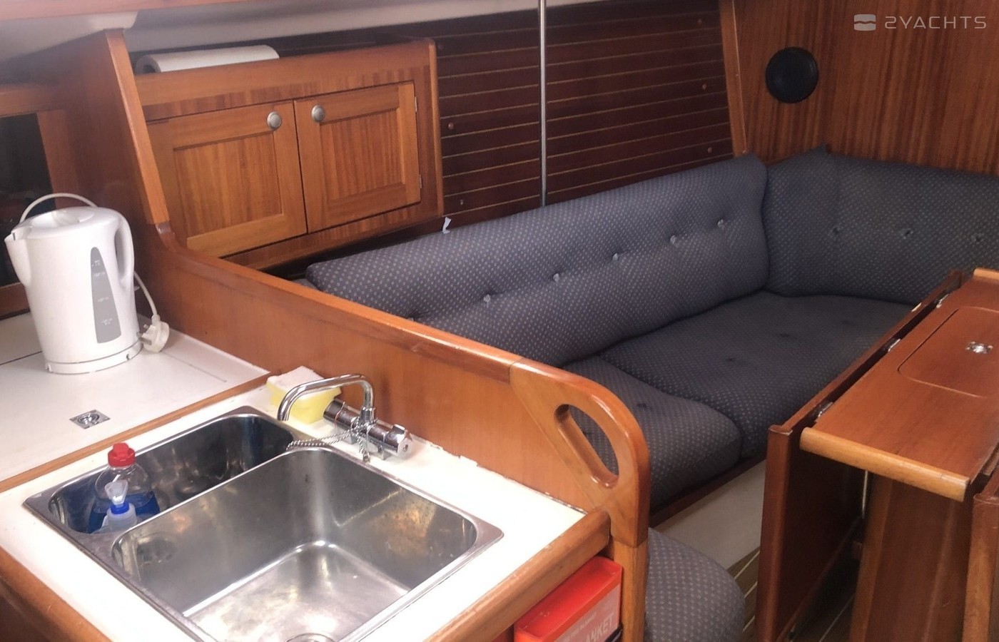Boat equipment features classical mainsail and salon gps plotter. It also boasts an an audio system and inside speakers. The fully-equipped galley includes an oven, cooker, sink and kitchen utensils.