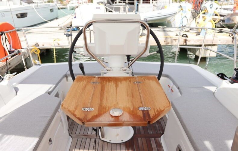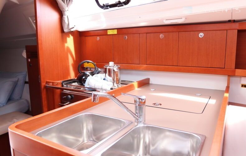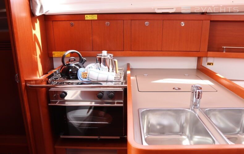 Boat equipment features classical mainsail, bbq, bimini and outside gps plotter. It also boasts an an audio system, outside speakers and inside speakers. The fully-equipped galley includes an oven, cooker, sink and kitchen utensils.
