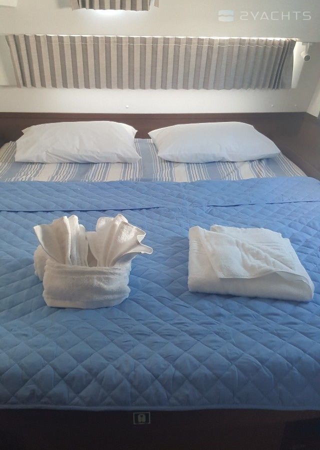 Boat equipment features classical mainsail, solar panels, generator, bimini and outside gps plotter. It also boasts a heating, air conditioning, an audio system, outside speakers and inside speakers. The fully-equipped galley includes an oven, cooker, sink and kitchen utensils.