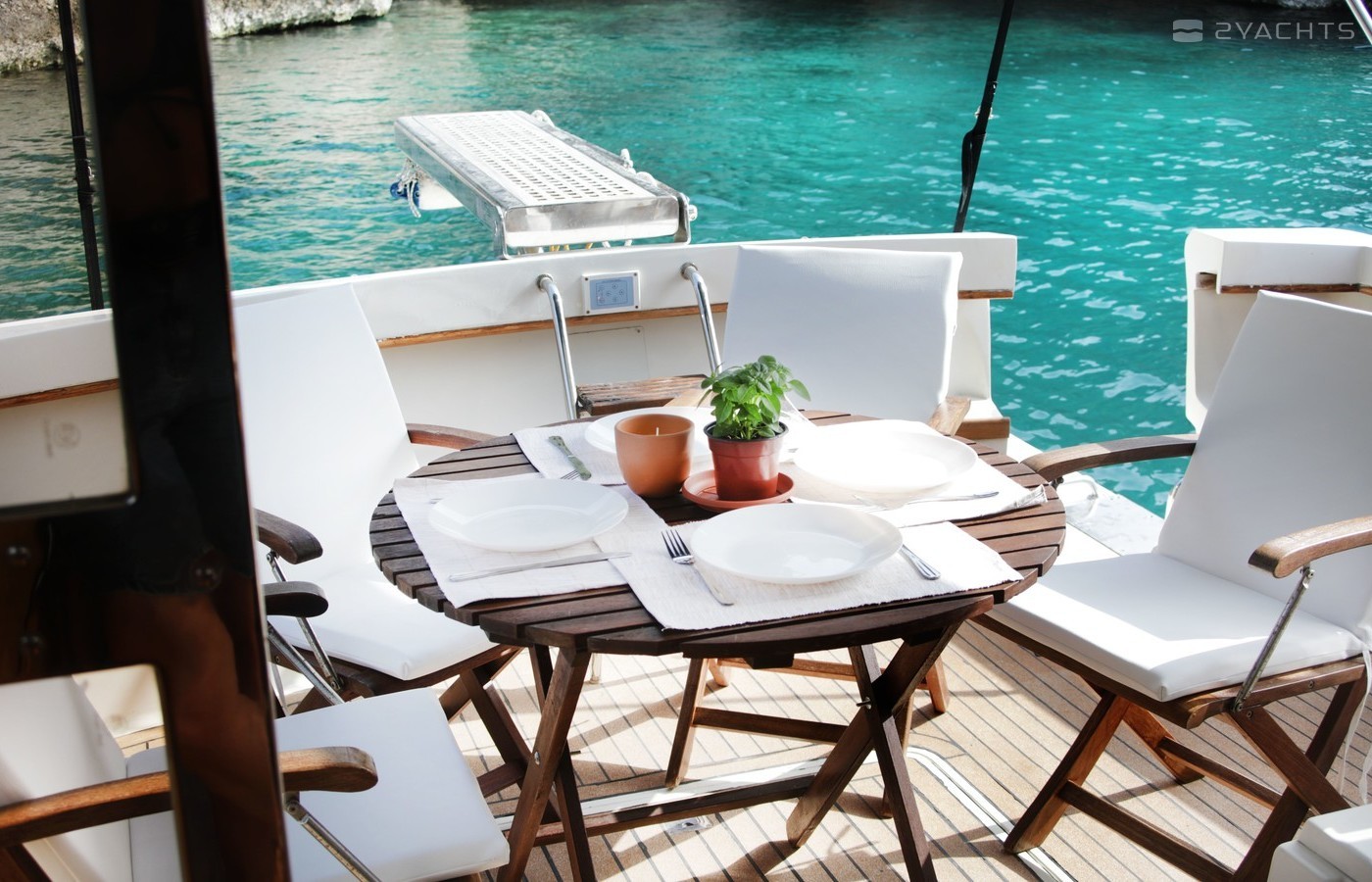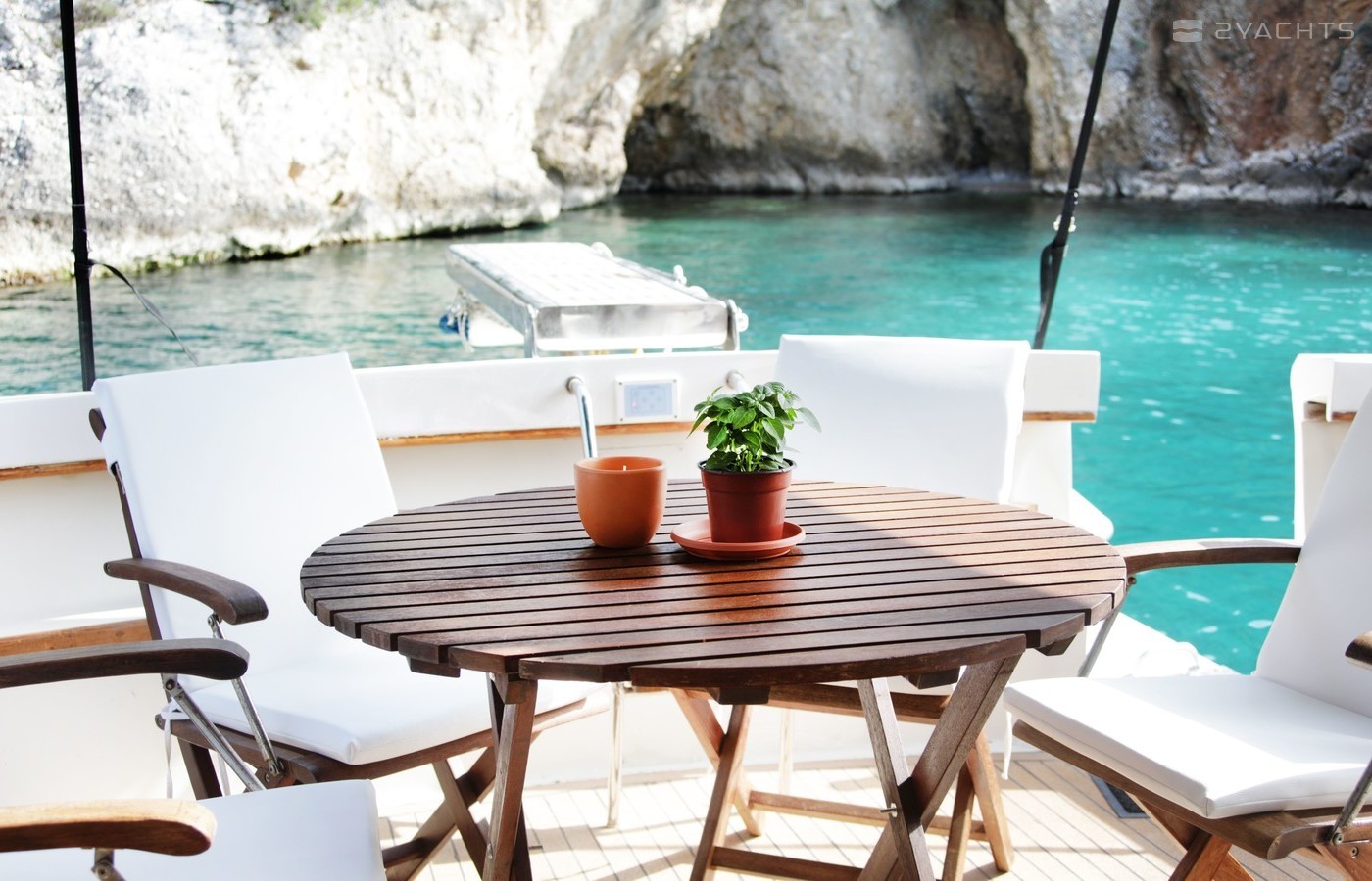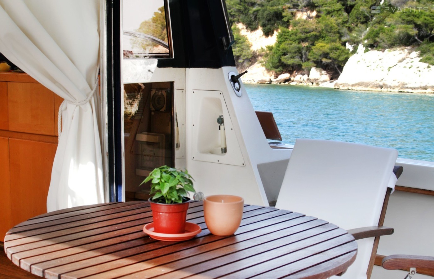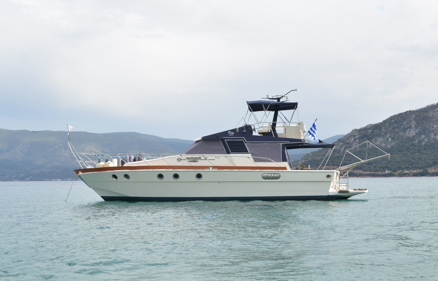 Motor yacht Posillipo 42 Martinica TS - Dim was built in 1983, (renovated in 2021,) and it is docked in Isthmia Marina, Greece.