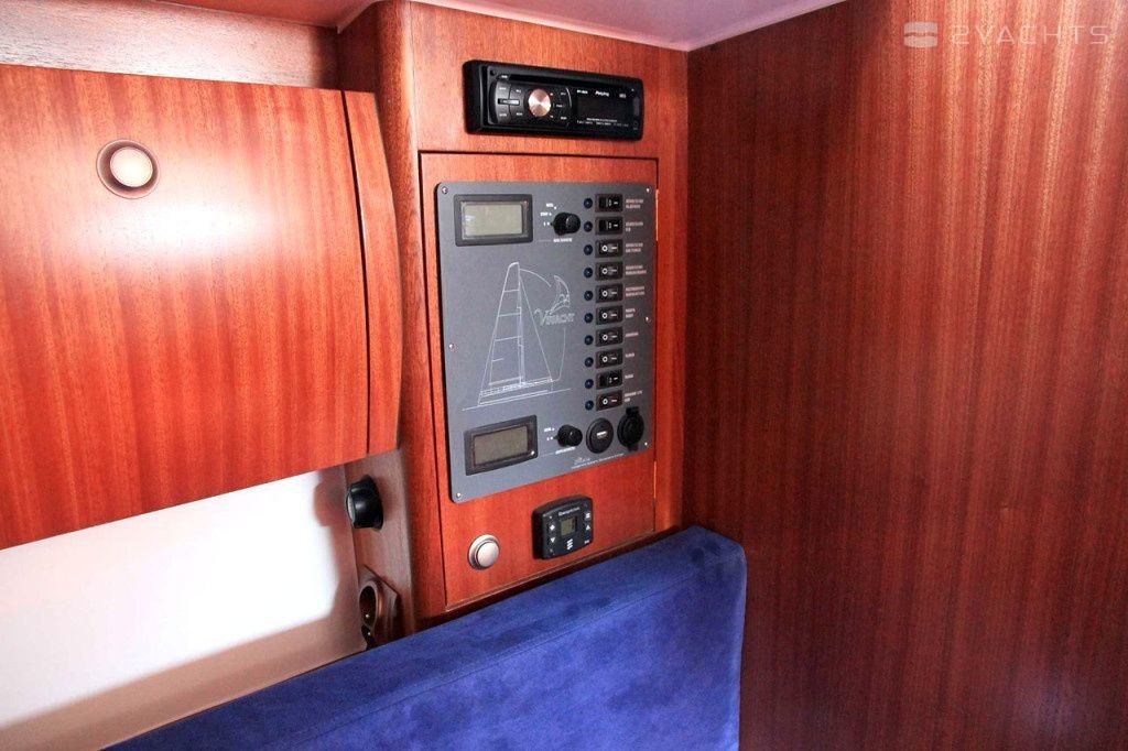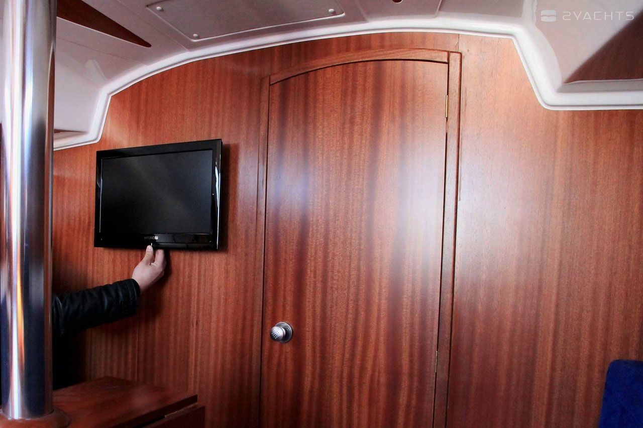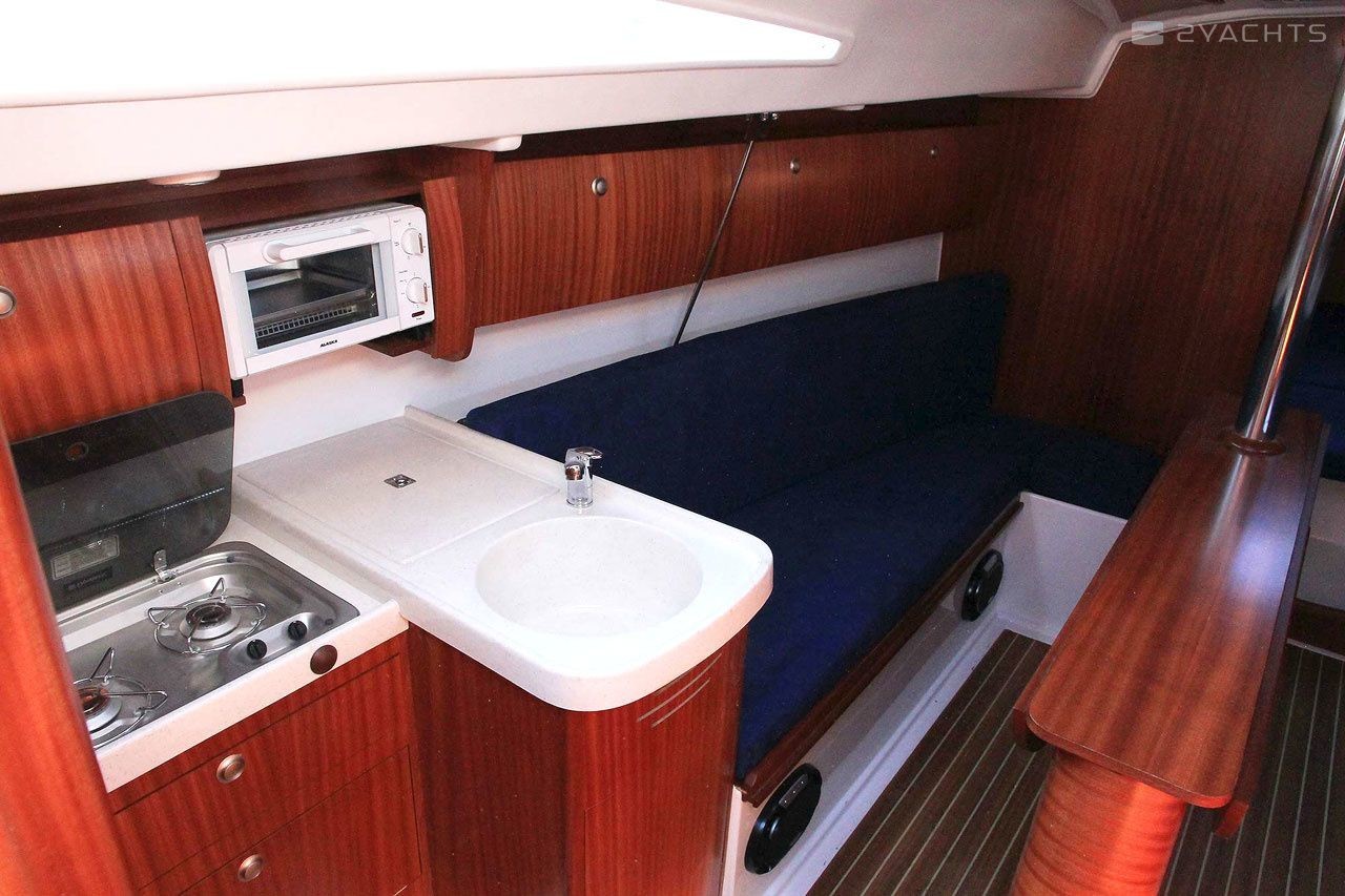 Boat equipment features classical mainsail. It also boasts a flat screen tv, heating, an audio system and inside speakers. The fully-equipped galley includes a microwave, cooker, sink and kitchen utensils.