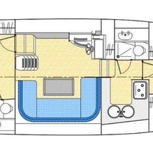 The living area of this houseboat consists of 2 cabins and accommodates 6 people. A shower is at the guests' disposal and there are 2 toilets on board.
