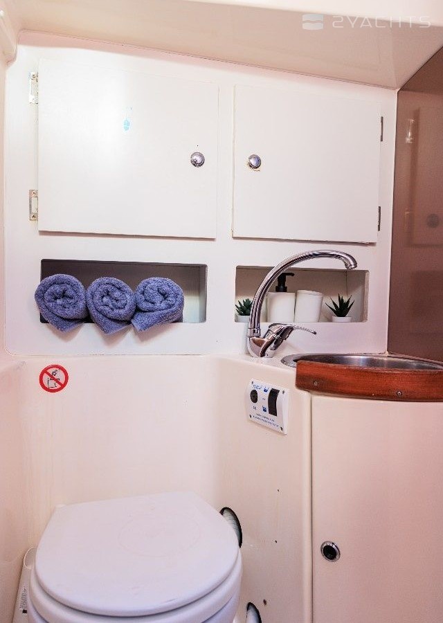 Sailing yacht Porto Candia offers 2 toilets with a shower.