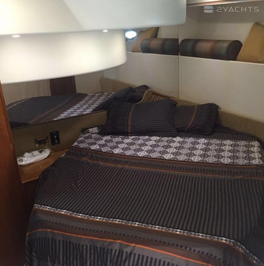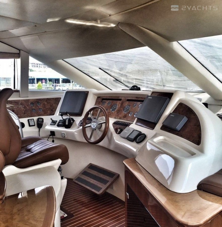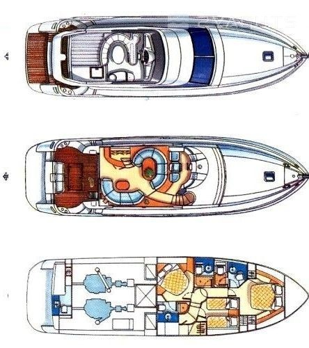 Boat equipment features radar, generator, salon gps plotter and bimini. It also boasts a flat screen tv, heating, air conditioning, an audio system and dvd player. The fully-equipped galley includes a microwave, dishwasher, ice maker, freezer and coffee machine.