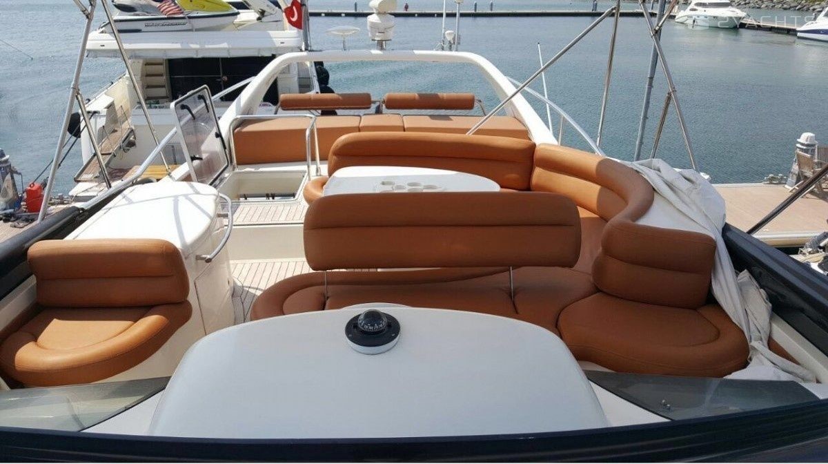 3-cabin motor yacht Azimut 58 - Regina Mare was built in 2001, and it is docked in Bodrum Milta Marina, Turkey.