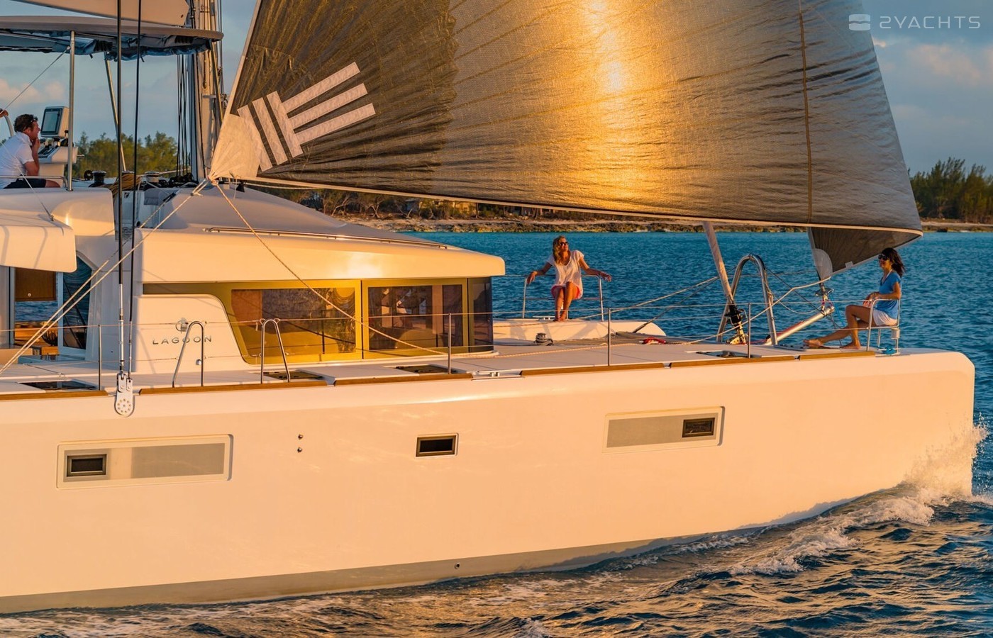5-cabin catamaran Lagoon 52 F - Zanzibar was built in 2021, and it is docked in Les Marines de Cogolin, France.