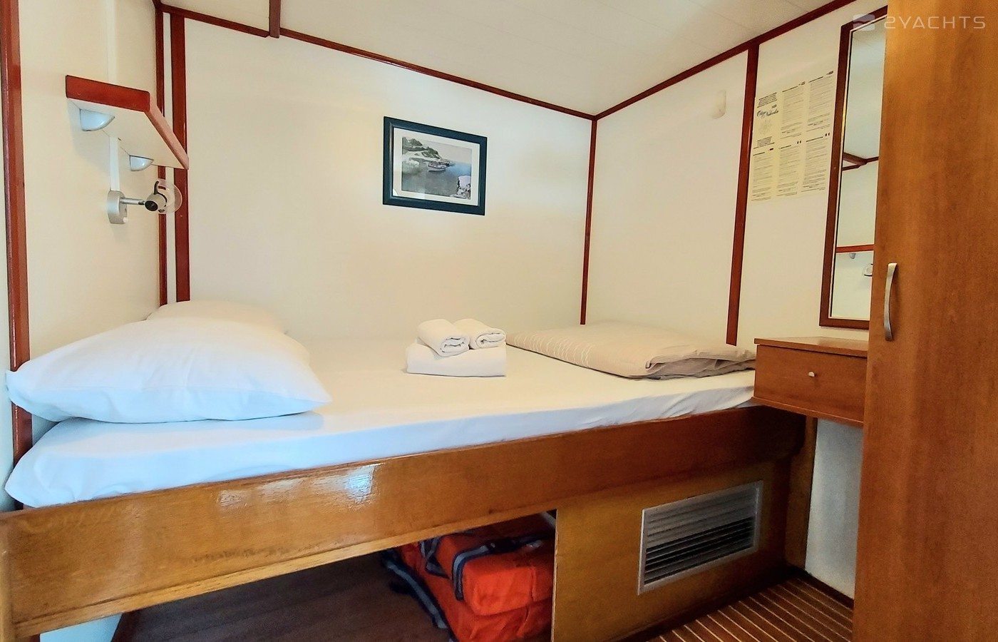 Otac Nikola can accommodate 28 guests in 14 cabins. A shower and 16 toilets are available on board.