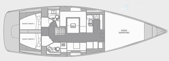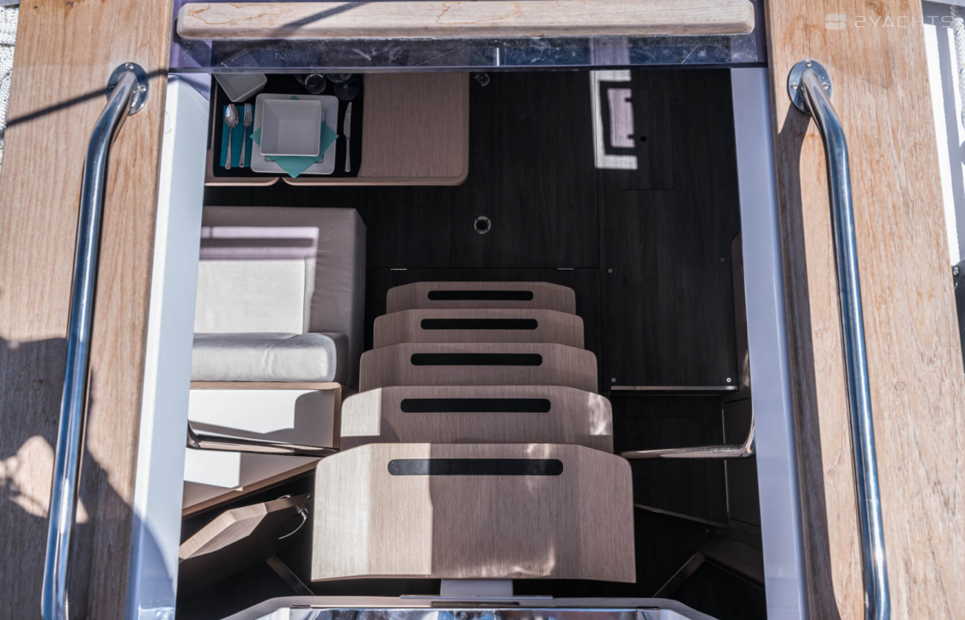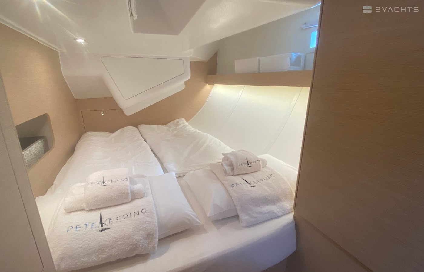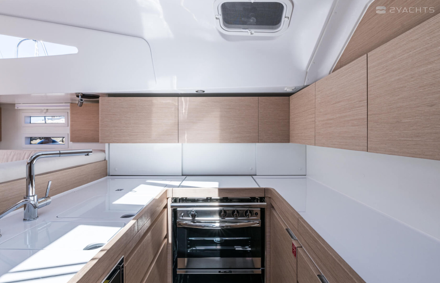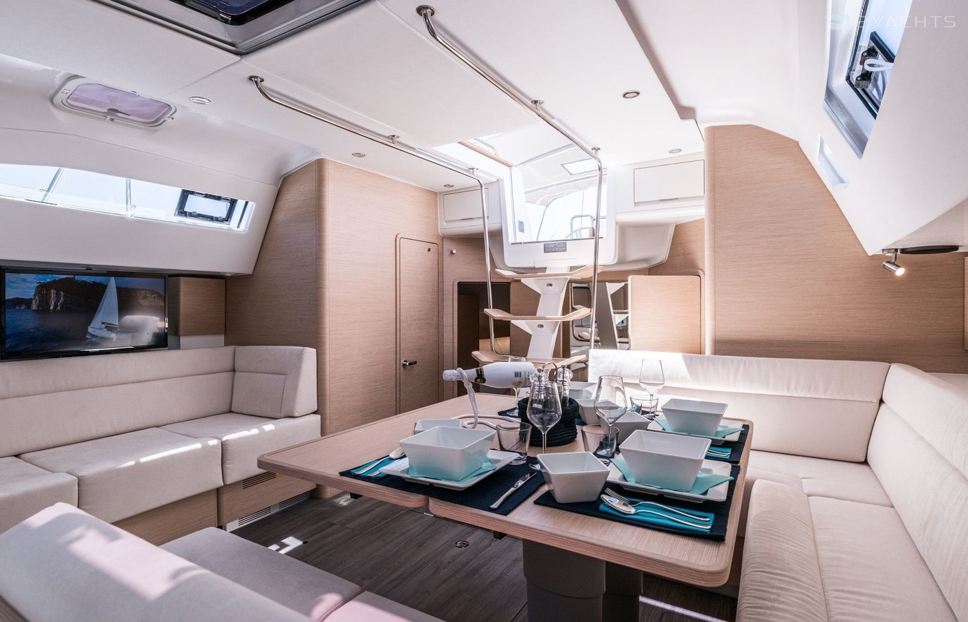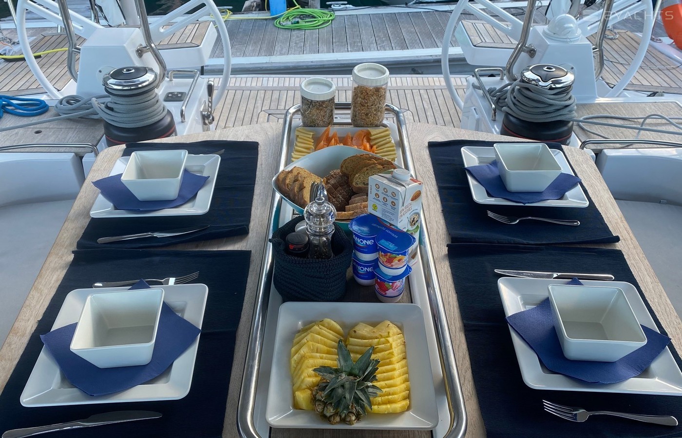 Boat equipment features classical mainsail, electric winches, radar, bimini and bow thruster. It also boasts a flat screen tv, an audio system, outside speakers, kayak and water skis. The fully-equipped galley includes a freezer, coffee machine, oven, cooker and sink.