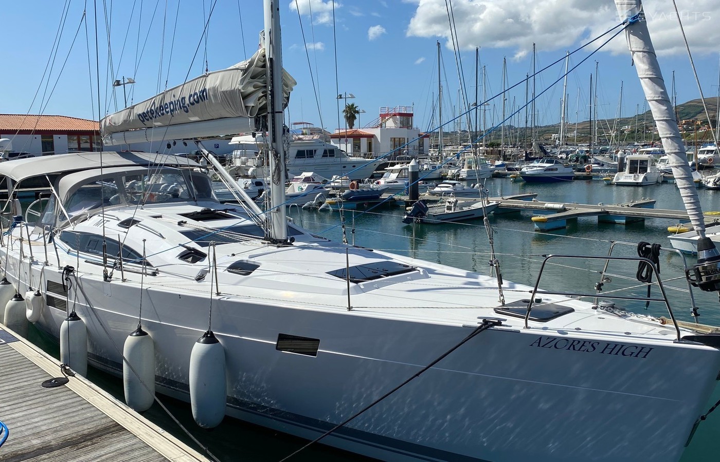 2-cabin sailing yacht Elan 50 Impression - Azores High was built in 2019, and it is docked in Marina Praia da Vitoria, Portugal.