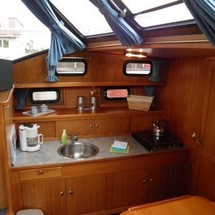 A well-equipped galley with cooker, sink and kitchen utensils is prepared to facilitate cooking. There is also a coffee machine on board.