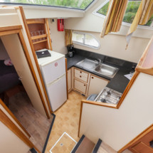 A well-equipped galley with oven, cooker, sink and kitchen utensils is prepared to facilitate cooking. There is also a freezer on board.