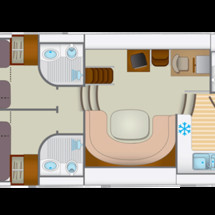 The living area of this houseboat consists of 3 cabins and accommodates 6 people. A shower is at the guests' disposal and there are 3 toilets on board.