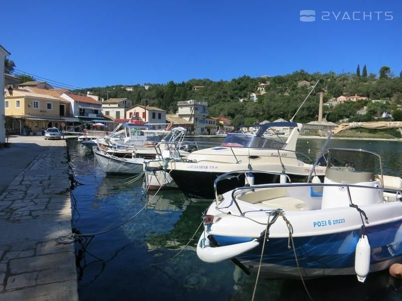 This motorboat is operated by the charter company Panos Boats and Trips.