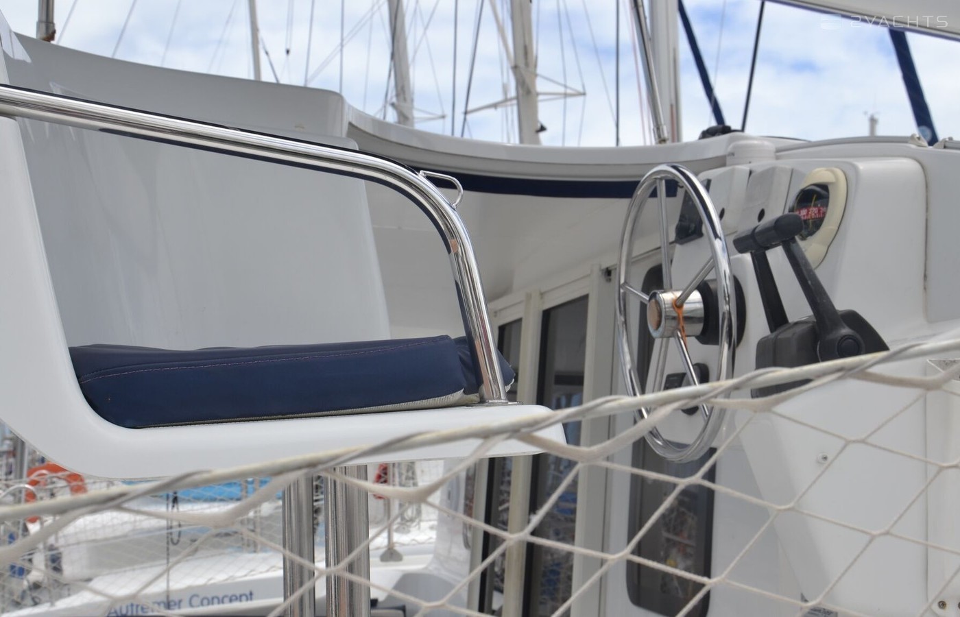 This catamaran is operated by the charter company Autremer Concept.