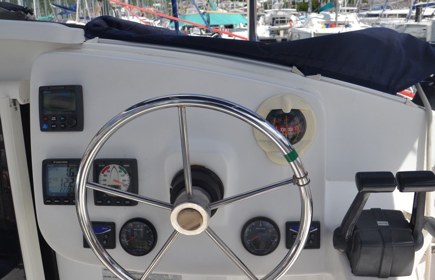 Boat equipment features classical mainsail, electric winches, solar panels, salon gps plotter, bbq and bimini. It also boasts an an audio system, outside speakers and inside speakers. The fully-equipped galley includes a freezer, oven, cooker, sink and kitchen utensils.