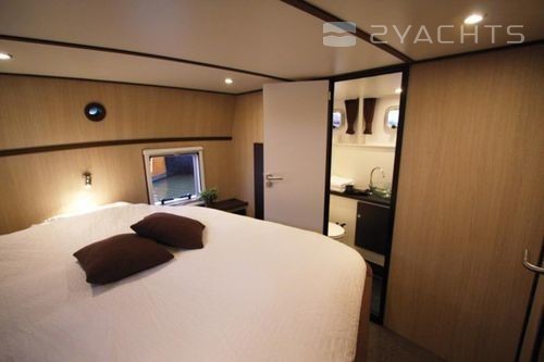 This houseboat is equipped with bimini and bow thruster. In chilly weather, guests will benefit from heating. flat screen tv, an audio system and inside speakers are also available.