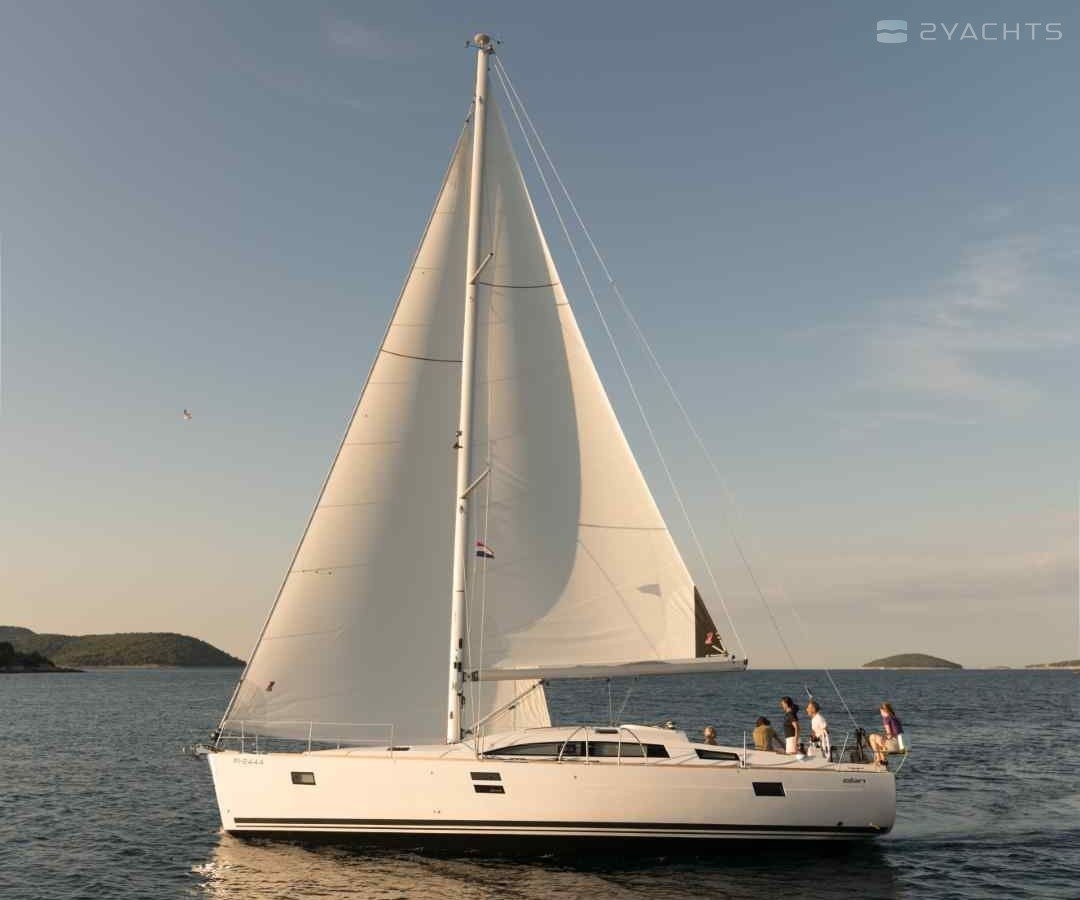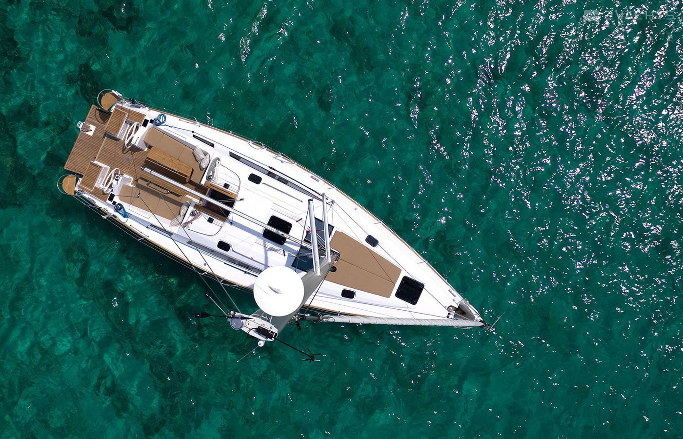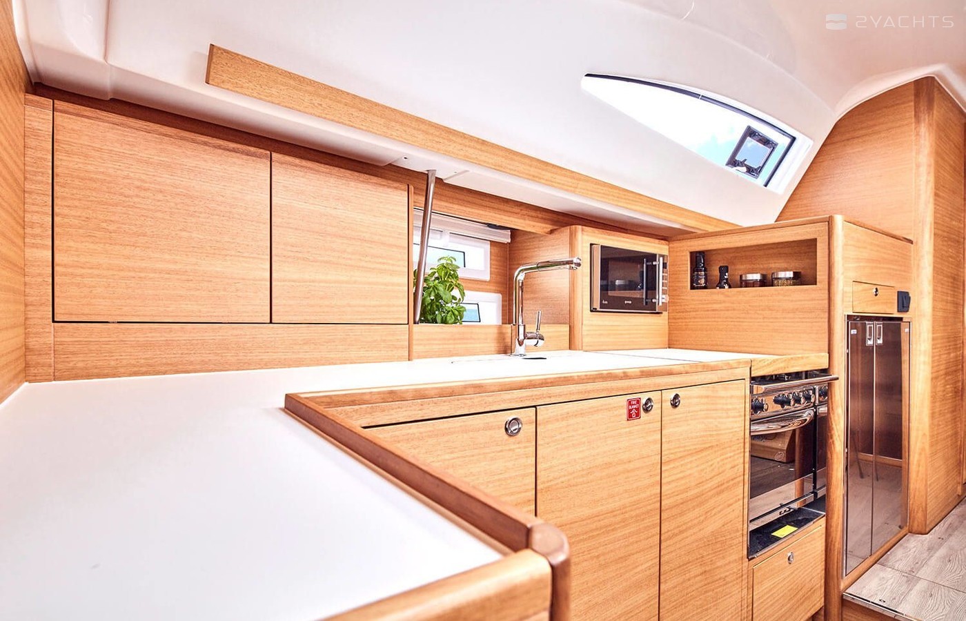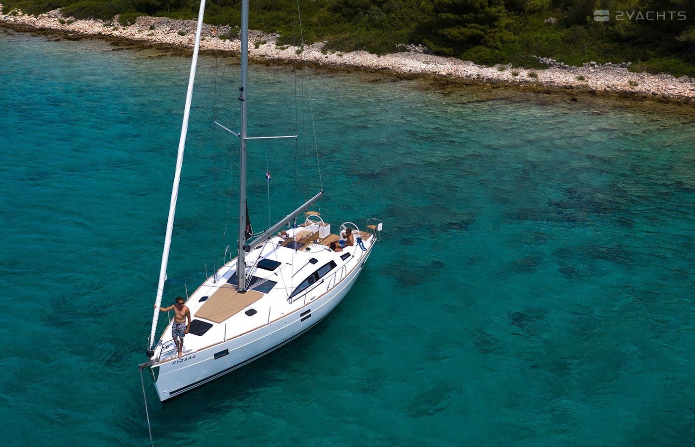 Boat equipment features classical mainsail, bbq, bimini and bow thruster. It also boasts a heating, an audio system, outside speakers and inside speakers. The fully-equipped galley includes a freezer, oven, cooker, sink and kitchen utensils.