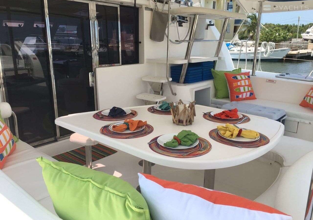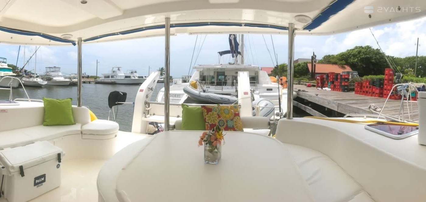 This catamaran is operated by the charter company Belize Sailing Vacations.